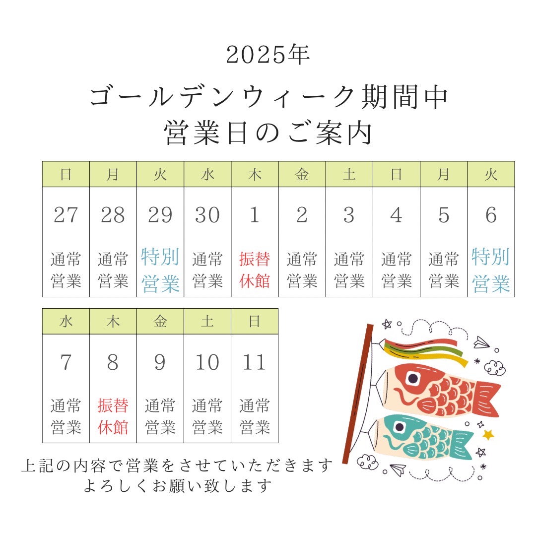 2025年 ゴールデンウィークの営業と休業のお知らせ