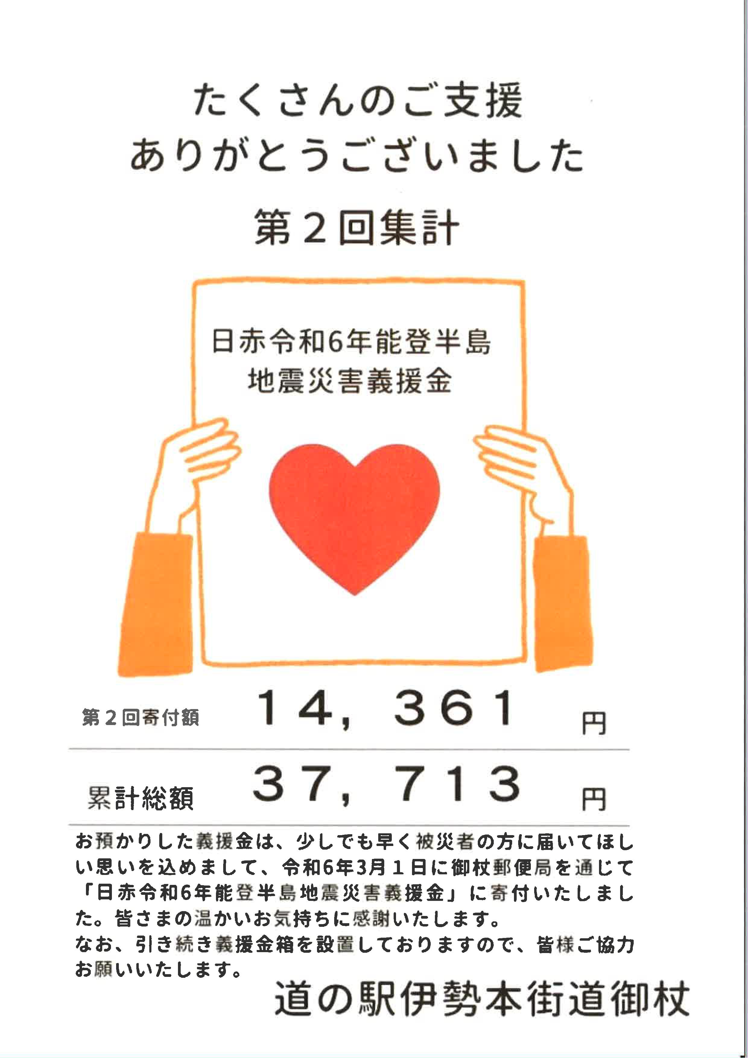 義援金第2回週計 ご協力ありがとうございます。引き続きよろしくお願いいたします。 2025 12/22 お知らせ 2024年3月10日2025年12月22日 能登半島地震災害義援金のご協力をいただきありがとうございます。第2回目の集計をいたしました。 引き続き継続いたしますので、よろしくお願いいたします。 お知らせ 臨時休業のお知らせ 3/11-3/15 2024.3.24(日)春待ち祭 開催!! 関連記事 ホームページリニューアルのお知らせ 2025年12月22日 ゆず湯のお知らせ 2025.12.22(月) 2025年12月14日 年末感謝祭のお知らせ 2025.12.21(日) 2025年12月14日 姫石の湯だより 2025.12月号 2025年12月1日 ご入浴回数券特別価格販売のお知らせ 2025年11月21日 臨時休業 時短営業のお知らせ 2025年11月21日 姫石の湯だより 2025.11月号 2025年11月12日 姫石の湯だより 2025.9月号 2025年9月1日