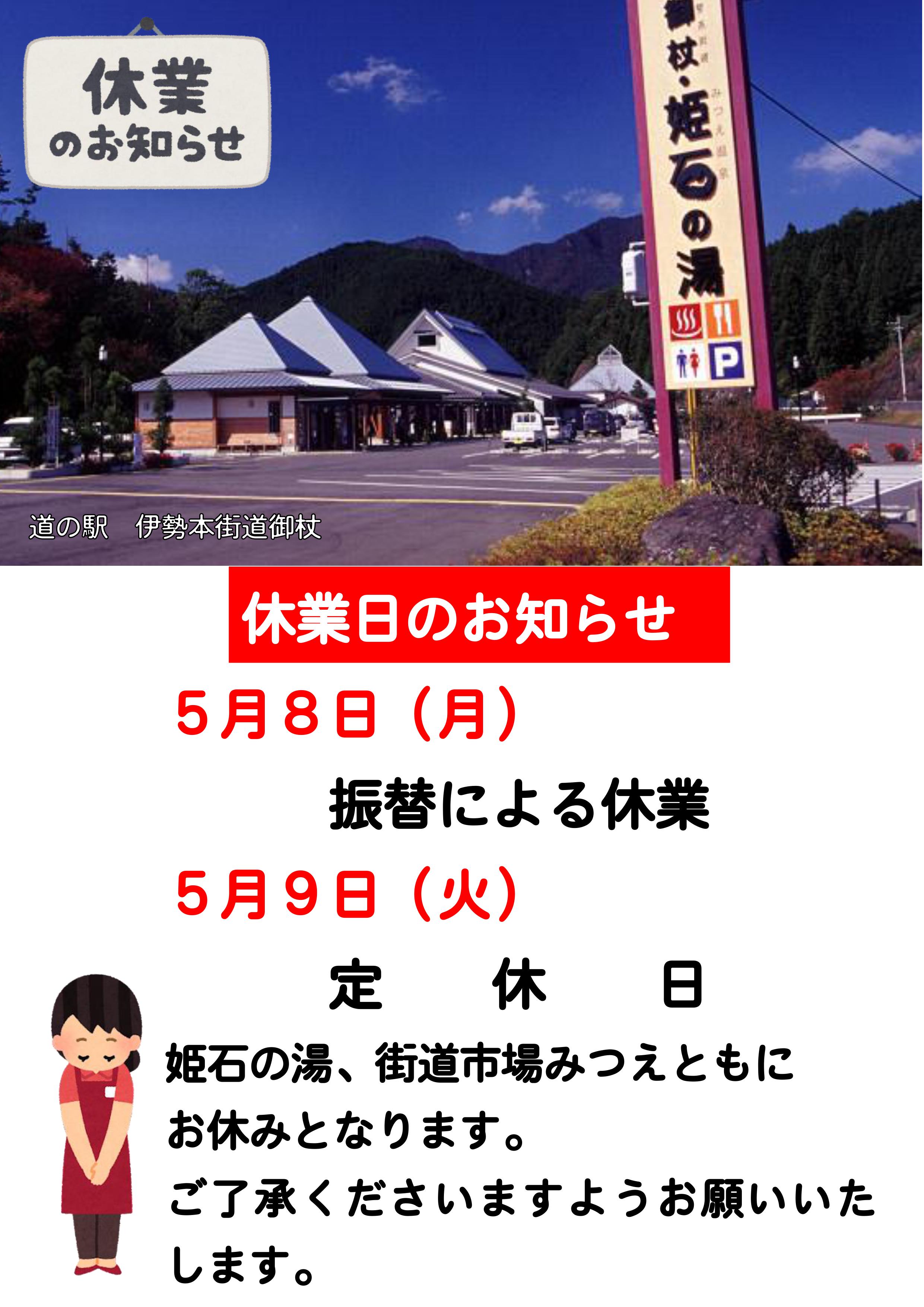 休業日のお知らせ 2025 12/22 お知らせ 2023年5月7日2025年12月22日 お知らせ 姫石の湯だより 2023.5月号 5月14日のセルフコーナー営業時間について 関連記事 ホームページリニューアルのお知らせ 2025年12月22日 ゆず湯のお知らせ 2025.12.22(月) 2025年12月14日 年末感謝祭のお知らせ 2025.12.21(日) 2025年12月14日 姫石の湯だより 2025.12月号 2025年12月1日 ご入浴回数券特別価格販売のお知らせ 2025年11月21日 臨時休業 時短営業のお知らせ 2025年11月21日 姫石の湯だより 2025.11月号 2025年11月12日 姫石の湯だより 2025.9月号 2025年9月1日