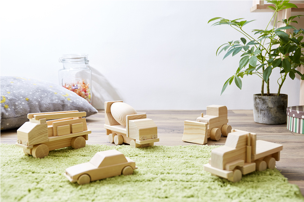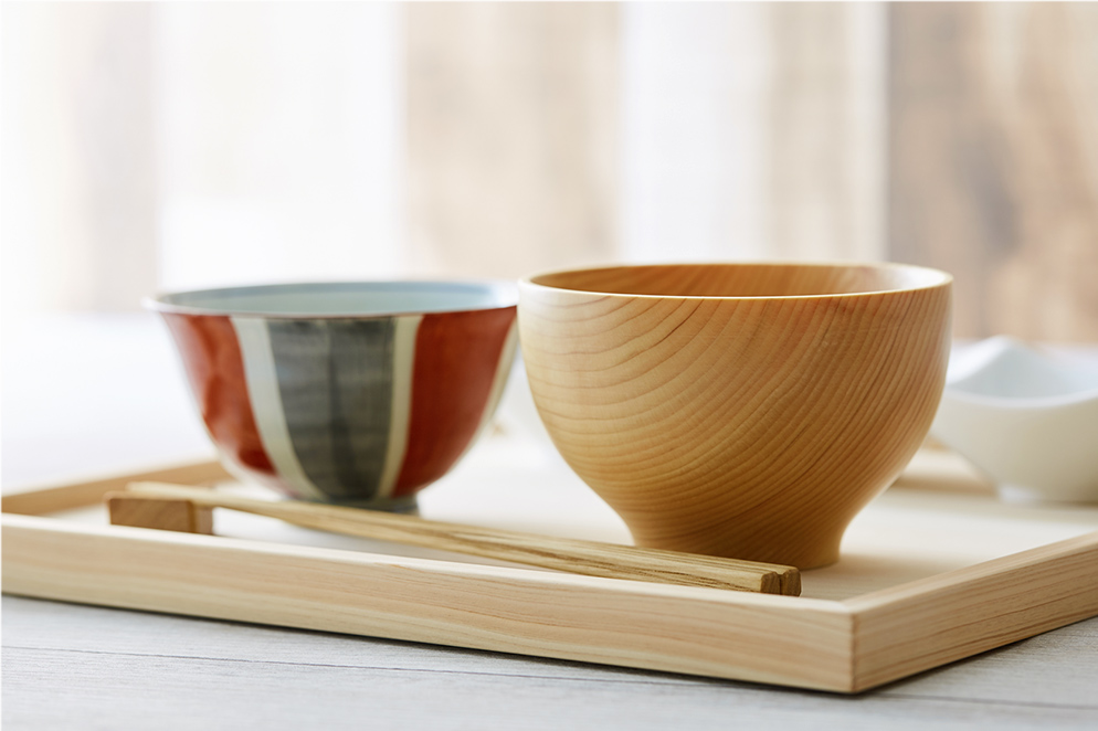 御杖村の豊かな自然環境で、長い年月手間ひまかけて育てられた御杖村産材を用いて、木目の優しい手触りとほのかに香る「木の香り」を生かし、さまざまな「木のぬくもり」を与える製品をつくりました。