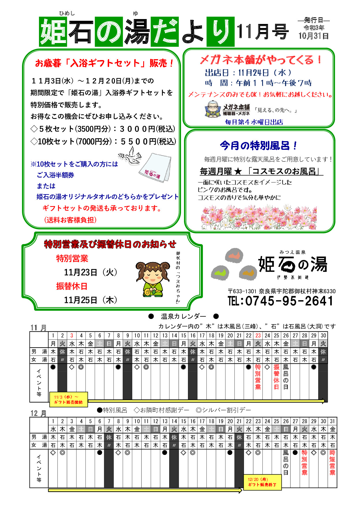 11月「姫石の湯だより」